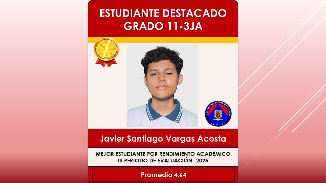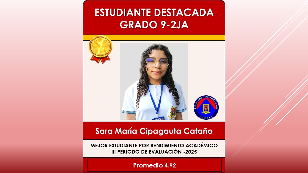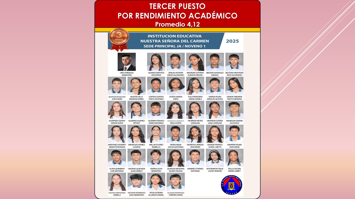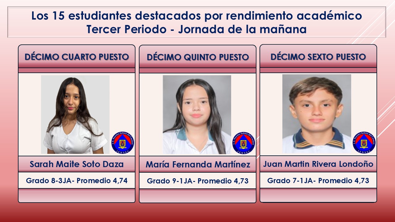 Por: Coordinación JA |La Institución Educativa se complace en exaltar a los mejores estudiantes de la jornada de la mañana, quienes, gracias a su esfuerzo, compromiso y dedicación, han alcanzado un destacado rendimiento académico. Su disciplina y constancia son ejemplo para toda la comunidad educativa, demostrando que con perseverancia y responsabilidad se logran grandes resultados. ¡Felicitaciones por este merecido reconocimiento!