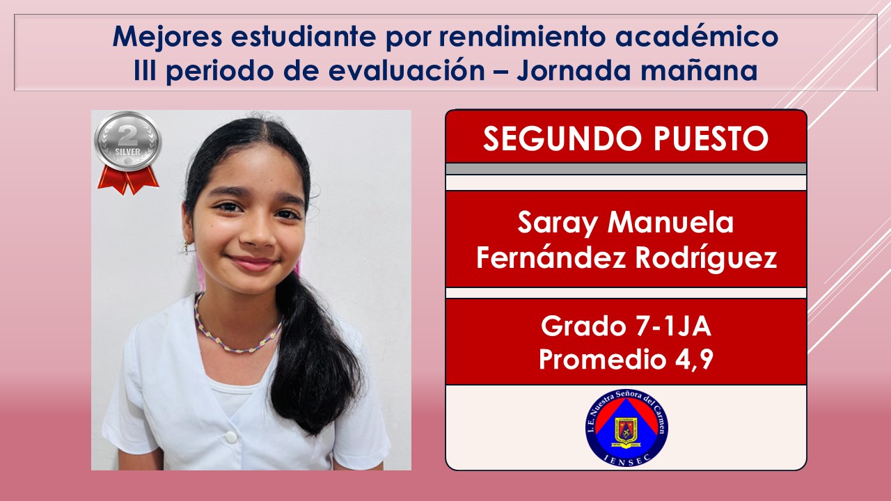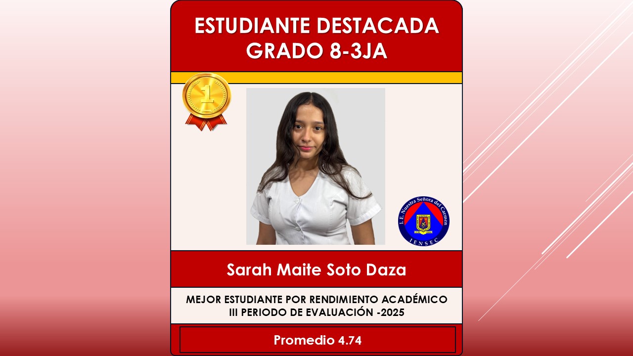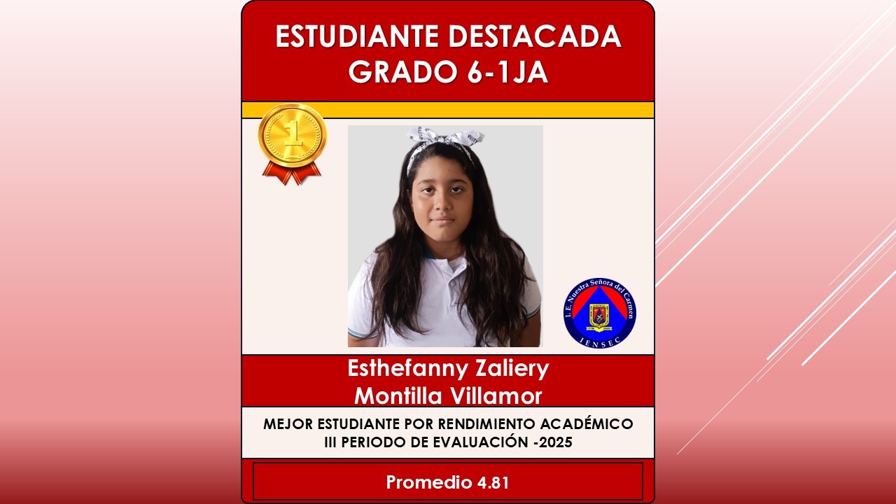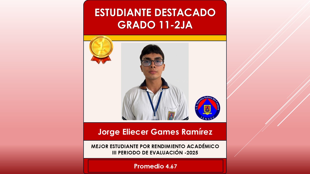 Por: Coordinación JA |La Institución Educativa se complace en exaltar a los mejores estudiantes de la jornada de la mañana, quienes, gracias a su esfuerzo, compromiso y dedicación, han alcanzado un destacado rendimiento académico. Su disciplina y constancia son ejemplo para toda la comunidad educativa, demostrando que con perseverancia y responsabilidad se logran grandes resultados. ¡Felicitaciones por este merecido reconocimiento!