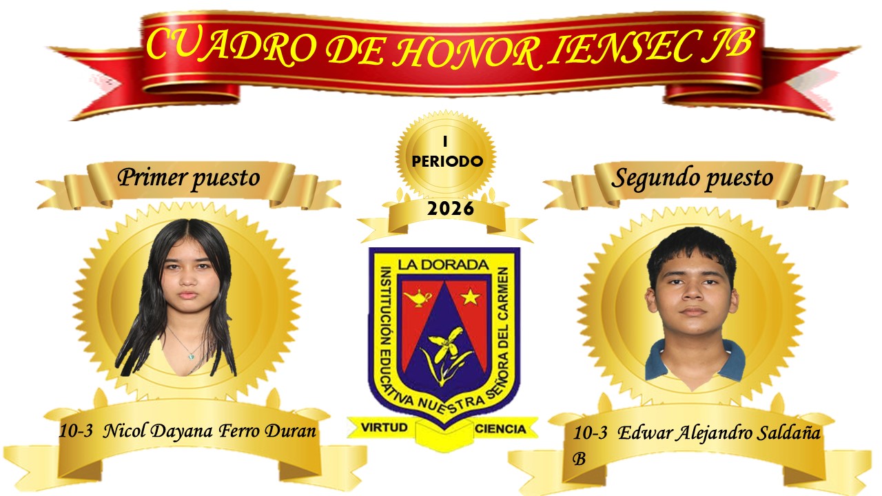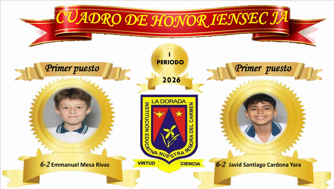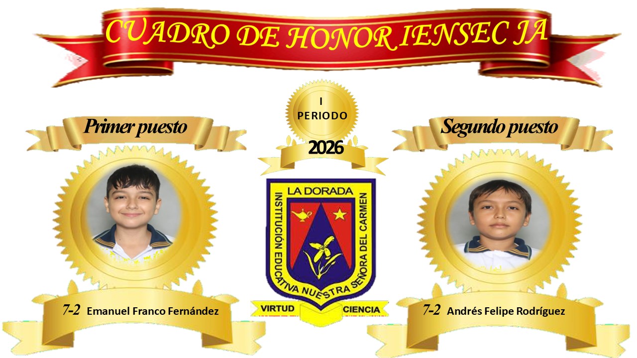 Cuadro de honor por mejor rendimiento académico por grupo. I periodo 2026, sede central.
